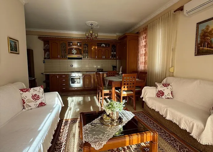 W kuchni goście mogą przygotować swoje posiłki. W tylko 450 metrach znajduje się restauracja Marfein Restaurant, gdzie można spróbować dań kuchni albańskiej. Apartament o powierzchni 110 m^2 leży w niewielkiej odległości od dworca autobusowego to Sarande.